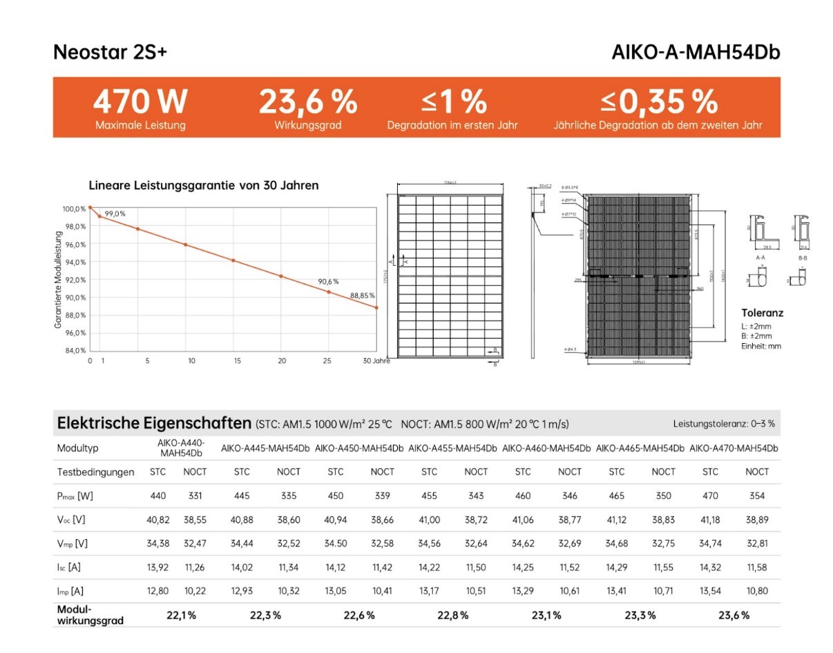 - Lange Garantielaufzeit: 25 Jahre Produktgarantie und 30 Jahre Leistungsgarantie